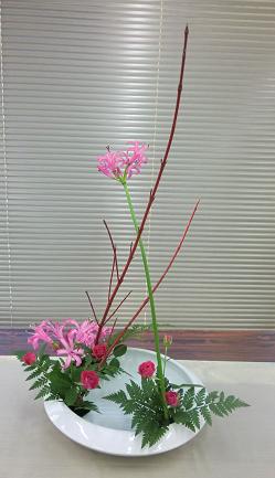 きょうも秋晴れの良いお天気です。午前中は小原流仙台支部がテナントとして入っているビルの消防訓練に行ってきました他のテナントさんは大体会社などが多いので、平日は常に出勤していて、その中で地震発生や火災発生の放送を受けて、指示に従って避難するわけですが、小原流は、研究会や本部行事、こども教室なども大抵土・日、平日は研究会の残務や事務仕事があるときに一部の人が出勤しているくらいですので、防災訓練や消防訓練の時には、わざわざ階段を使って避難する訓練に参加するためだけに出勤します仙台支部の防災管理者は私ともう一人ですので、二人で交代で参加します。あと数人避難要員に来ていただいて参加します。きょうは、階段での避難の後、消火栓を使った放水の仕方を学びましたさて、大垣鳳茱先生をお迎えしての月例研究会、日曜日に出席しました。今回の先生はとても丁寧な講評で大変ありがたかったのですが、時間が押してしまって次の時間の会員さんが来てしまい、受付も始めないといけない時間になり、会場準備も大童でした。会場であわてて撮った写真を昨日アップしようと思ったら、吾亦紅が上まで写っていなくて散り紅葉を写そうとした結果だと思うのですが、家でいけなおしたものを撮らないといけなくなり、昨夜では自然の光ではないので、きょう写しました 会場でいけたものの結果は90点でした。講評を聞いてもどこが悪かったのか余り良く分からなかったのですが、今回は厳しい点数で、いつもは使わずに仕舞ってある85点の札も使ったそうなので、90点なら良しとしないと…と自分で慰めたりして…数点はあった95点の作品は、確かにきれいでしたから、ちょっとのことかもしれませんね見せていただいた95点の作品を少しは真似したつもりでいけました。こっちも見てね 「おばさんのつぶやき」 ブログランキングに参加しています。 きょうもポチっとお願いします