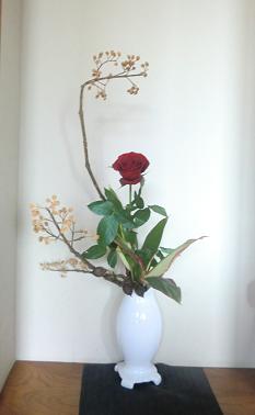 早いもので、今週末はもう12月で、12月の支部研究会です。11月中にお稽古をしないといけない日程なので、月末ですがお稽古です。今月はクリスマス向きのお花のクラスが多いです。3級の課題はコキア3、スプレー薔薇(赤)3、ミリオクラダス少々、霞草少々「花意匠・まわるかたち」先週お一人お稽古しましたが、きょうもお二人がいけました。 スプレー薔薇が深紅で、もう少し(くらい)明るい色だと可愛かったのですが本科の課題はフリージア3、薔薇2「花意匠・たてるかたち」 フリージアが華奢で立てるのが難しそうでしたが、研究会ではしっかりしたものを期待します。本科さんですからこっちも見てね 「おばさんのつぶやき」 ブログランキングに参加しています。 きょうもポチっとお願いします
