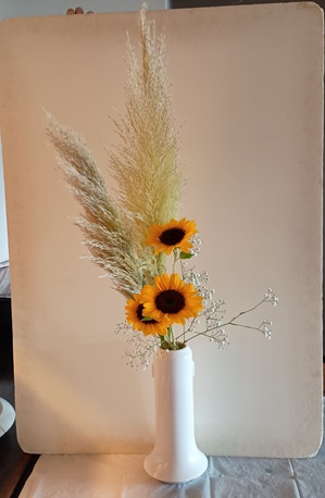お花屋さんにパンパスがあったので、少しは涼しく見えるようにさらっと