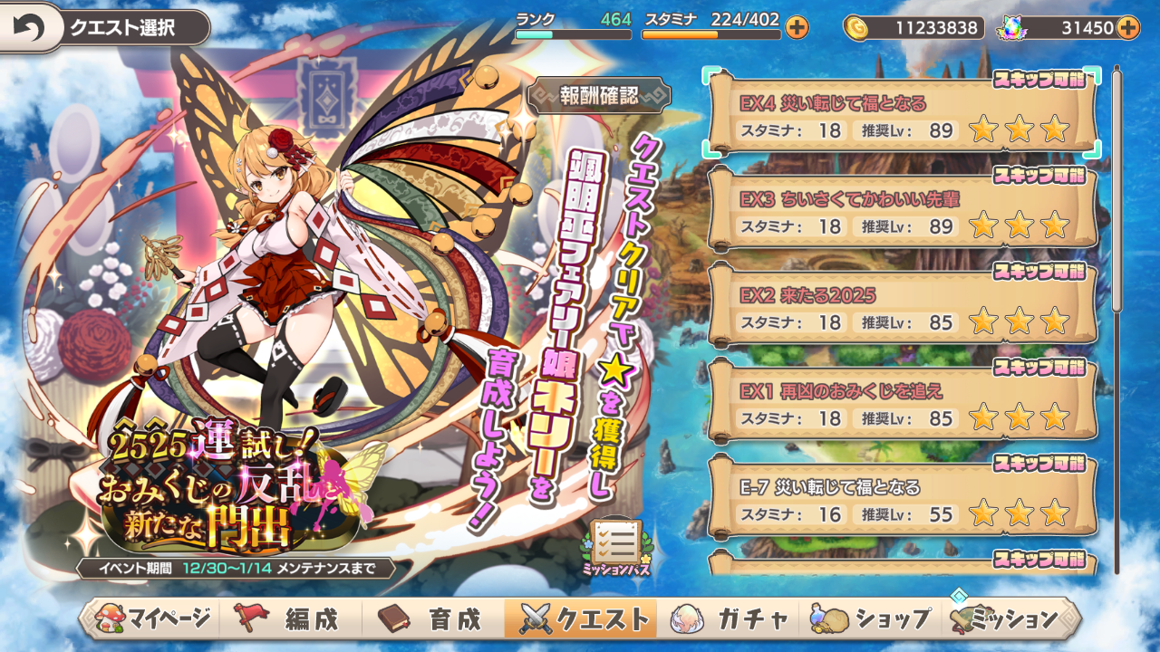 難しいをクリアするとサブスキルの「ゆく年くる年」がゲットできます
