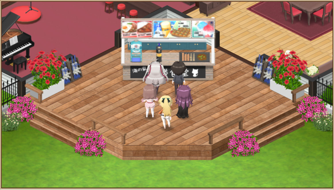 花音と手伝いに来たひまり子は浮き輪を膨らませます
