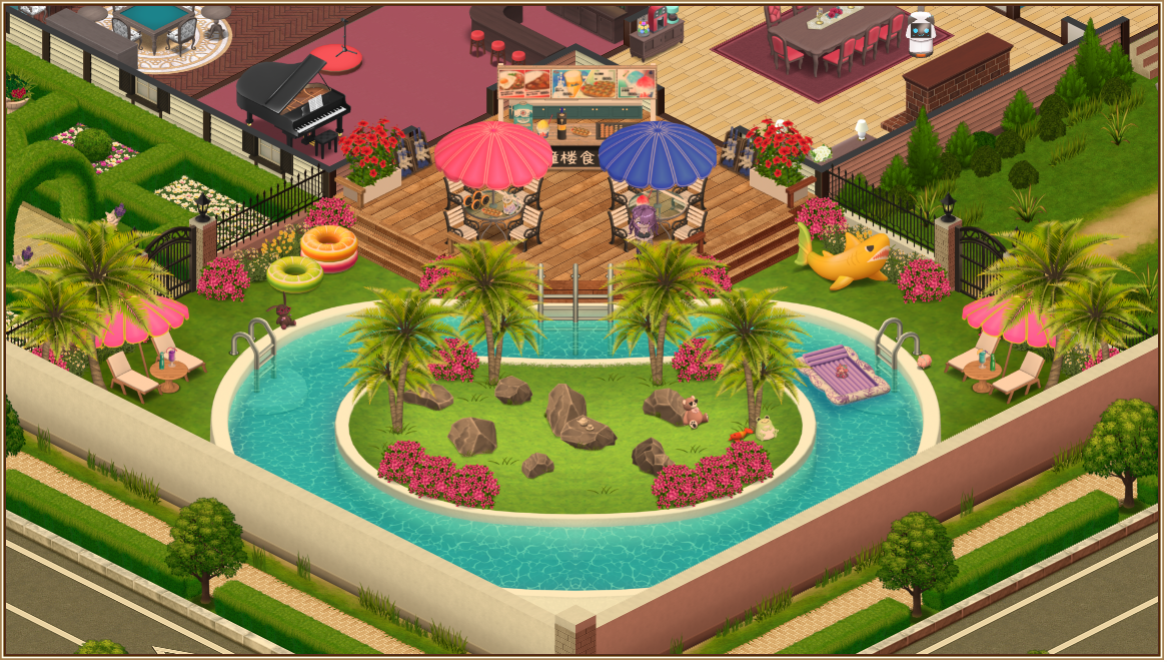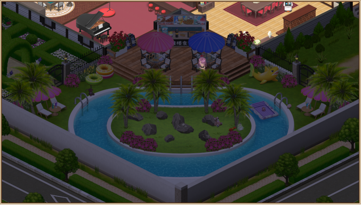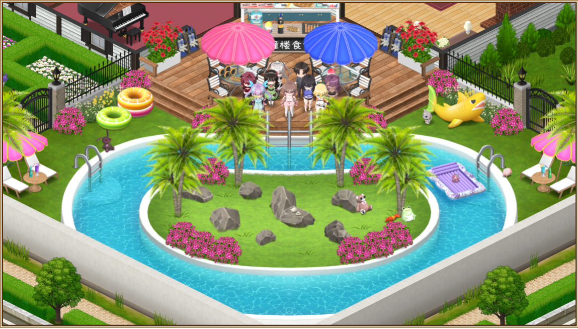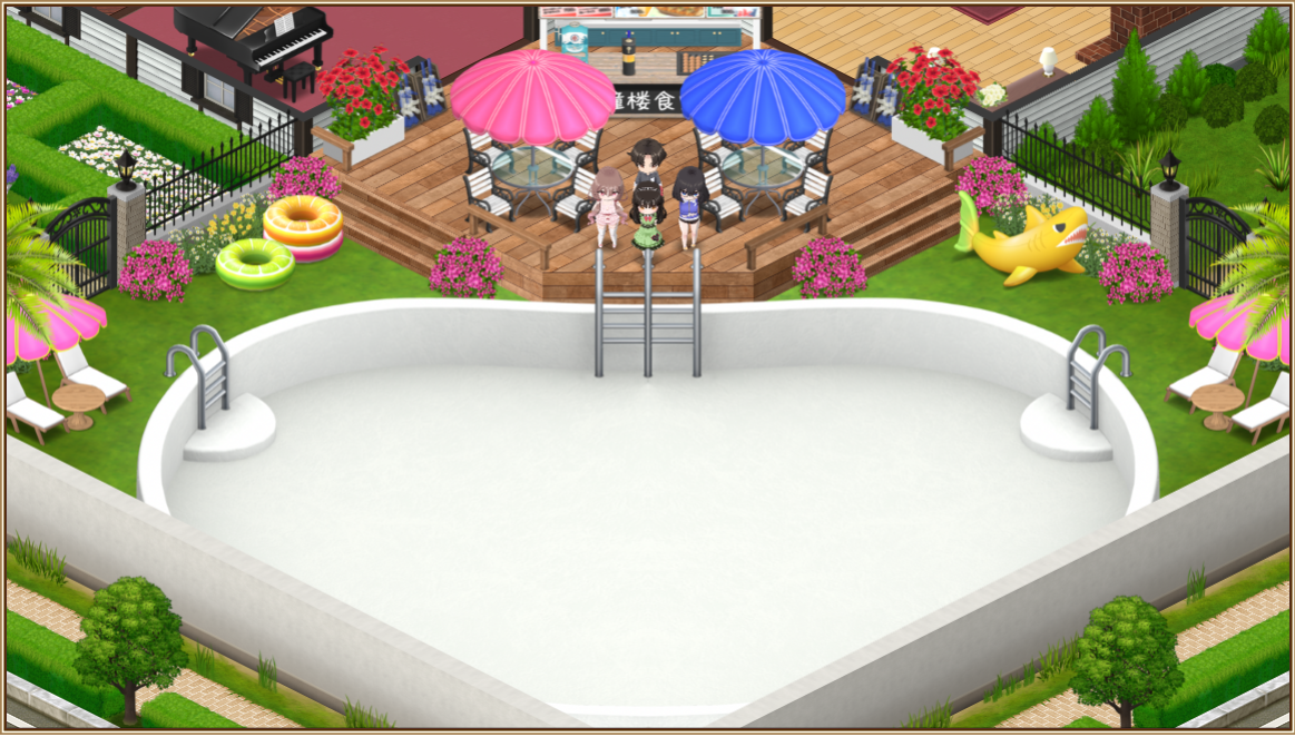 まずは、いつもの庭にバトルフィールドとなるプールを設置しますが