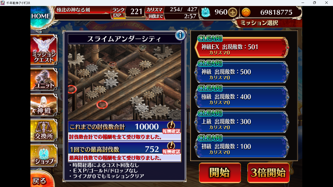 しかし、ボス敵のレインボースライムは倒せなかった…。
