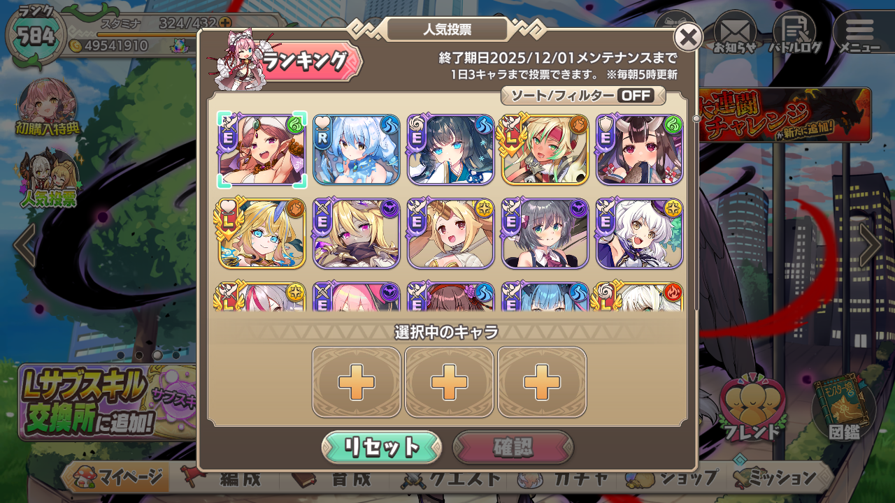 今日出来た事と言えば、人気投票に投じた事です