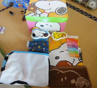 2回目更新~ww朝から雪~寄り道しながら私の実家行きましたホントは初売りでLEDのシーリングライト限定5本を並んで買う予定の旦那さん@@あまりの雪に諦めましたで、普通に開店してから電気やに寄ったのですが、まだ残ってて楽勝で買えました並ばなくて良かった。。。その後、久々ミスドへつられて、初めて2000円の福箱買ってしまったよドーナツの券だけで20枚入ってるから、お得だよねおまけのスヌーピーグッズ、可愛かったです箱は息子くんのおもちゃ入れに。タッパーも息子くんのお弁当箱に。(結構大きくて良い感じ)ブランケットとエコバックは、袋が内蔵されててコンパクトに出来るww(めちゃ可愛♪)ハンカチも可愛かったし♪カレンダーは母親にあげました!買って良かったな~と思える福箱でした^^ただ、大好きなエンゼルクリーム買ったけど、味変わったのかな?前の方がふわふわしてて美味しいと思ってしまった。。。形もちょっとつぶれた感じだったし==お店によって違うのかなー?><ちょっと残念