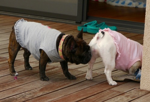 ドッグショーイン徳島 今日は、徳島市吉野川運動広場で開催されるドッグショーに行ってきたの。実は、パパのお友達のTさん一家が、ドッグショーに出演するので、応援に行く予定だったの。でも、お家を出るのが遅れちゃって、会場に着いたときは出番は過ぎていて、せっかくの演技を見逃しちゃったわ!丁度審査会場では、小町お姉ちゃんそっくりの体型のブリンドルちゃんが演技中だったわ!広い会場をかっこよく闊歩していたわ!実はこのフレブルちゃんが優勝したのよ!あたしたち、ちょっと自分に自信が湧いてきたわよ・・・・(笑)だってね、みんなが寄ってきて、あたし達のことを格好いい!可愛い!って褒めまくってくれるんですもの・・・・(笑) こんにちワン!この派手な背中の子は、Tさんちのしじみちゃんよ!なんと、背中にピンクのハートやお星様が付いているの(゜Д゜) 右からやって来た子は、ミニチュア・シュナウザーのパタリロ君なの。今日出演していたのはパタリロ君だったの。パタリロ君は、背中に絵が描いてあるの(唐獅子牡丹らしいわ?)時間が遅れちゃって、ごめんなさいね、パタちゃん! お姉ちゃんお得意の大型犬がたくさんいて、お姉ちゃんったら大張り切りよ!でも、お姉ちゃんの遊ぼうよ攻撃が激しいので、みんな逃げて行っちゃうの! さくらだって、大きな子と遊びたいもん!遠慮なんてしないわよ! 二人とも興奮しすぎて、ガハガハになっちゃったわ!しょうがないから、吉野川の方へ行ったのよ。 川岸からお水に入ったわ!これで何とかひとごこちついたわよ! 身体が濡れるとね、海風が吹いていて、涼しくて気持ちがいいのよ。ただ、汽水域だから塩水なのが残念ね!この広場は、吉野川橋の下にあるの。よく、お年寄りがゲートボールの大会をしているのよ。 会場で、無料で愛犬のしつけ方教室をしていたわ。Tさんが勧めてくれたので、試しに参加してみたのよ! 小町お姉ちゃんは、パパと、さくらはTおばさんが一緒につれて出てくれたの。知らない人と一緒だと緊張しちゃうわね!でも、リードウォークからアイコンタクト、お座りと待てまで完璧にこなして、凄く褒めて貰ったわよ! 小町お姉ちゃんは、今ひとつ、出来が悪かったみたいね!だって、大型犬を見ると遊ぼうとするんですもの、お座りどころじゃないわよ・・・・(笑)