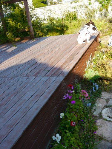 お庭は花盛り あたし達も、召使い達も、昨日のドッグショーで疲れ果てちゃってね、今日は朝からお家でゴロゴロと油を売っていたの!とってもいいお天気なんだけど、普通にお散歩するのは、ちょっと危険な感じね! ちょっと歩くだけで息切れがしてくるのよ!流石にお外には出る気がしないわね! お庭にお水を出して貰って、見回りでもしようじゃないの!これも立派なお仕事なのよっ!こんな時は、お姉ちゃんには逆らえません。小町お姉ちゃんの言うとおり、お庭中を回ってくるわね! いつの間にか、チューリップが花盛りよ!水仙のお花はもう終わりに近づいているみたいだわ!この白いお花は、去年植えたラズベリーなの。さくら、ラズベリー大好きだわ!実が成ったら、一番にお味見するわよ! あらあら、畑の真ん中にスイセンやチュッリープを植えたのは、誰かしら? 真っ白い大根のお花が花盛りよ!こうなったら大根はもう食べられないけど、もしかして種を採るつもりかしら?種は、買った方が安上がりだと思うけどね・・・・・(笑) 大根もキャベツも全部除けなきゃならないわね!次は何を作ってくれるのかしら?あたし達の希望は、トマト、キュウリ、ナス、カボチャよ。ゴールデンウイークあたりに植えると丁度いいらしいわ!野菜のお花も意外と可愛いものなのよ!このお花は、ソラマメのお花なの!花の後に、豆が空を向いて付くのよ! タンポポの綿帽子を見付けたわ。お姉ちゃんの鼻息で、一発で吹っ飛んでいったわよ! 黄モッコウバラの根元に、変わったスイセンが咲いていたわ。木香薔薇のつぼみも少し膨らんできているの。バラの季節ももうすぐだわ・・・・。 このバラは、イングリッシュローズのゴールデン・セレブレーションよ。蕾がたくさんあがってきていたわ! 端の方に控えているオールドローズのシャポー・ド・ナポレオンよ。古い枝の途中から、新芽がたくさん出てきてるわ。この古い枝から出た新しい芽に花が付くのよ!だから、剪定の時古い枝を残しておかなきゃ、今年の花が咲かないの! 四季咲きのバラは、いくら切っても平気だけど、オールドローズは結構剪定が難しいの・・・・・(笑)あたし達も、次第に物知りになってくるのよ!こんなあたし達を応援してね。