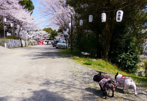 城山公園でお散歩 今日はまあまあいいお天気だったわ。今日は、召使い達が忙しくしていて、遠くまでは出かけられなかったの。で、すぐ近くの城山公園でお散歩してきたの。もちろん、歩きよ!公園は、お花見気分でいっぱいだったわ!たこ焼きの屋台が出ていたのよ!おいしそうな匂いが刺激的だったけど、埃がいっぱいだから、あたしたちの身体には合わないんですって! 至る所に桜の花が咲いているの。向こうの方にお城が見えるでしょ!あれは、本当のお城じゃないの、レストランなのよ・・・・(笑) ここから上に登ると展望台に出るの。ちょっと暑いぐらいだわ! 上の方から、ミニ八十八ヵ所があって、あたしたちでも簡単に回れるの!ここから、赤い鳥居を全部残らずくぐると、病気にならずに過ごせるんですってよ! 鳥居を全部くぐって降りてきたのよ!満開の桜のトンネルが凄くきれいだわ! お姉ちゃんが一番乗りだったけど、さくらもちゃんとズッコケずに到着したわ。これで、もう予防注射しなくていいのかしら?バカね! そんなわけないでしょっ! 冷たいお水を飲んで、ひとやすみだわ。次は、ライフジャケットを持って、河原まで行こうかな? ↓ とても元気なあたし達を応援してね。