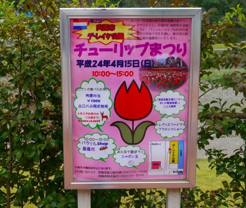 美馬のチューリップまつり 今日は朝から雨が降ったりやんだりで、何となくパッとしないお天気だったの。少し寒いくらいだったわよ・・・・。お昼休みに、美馬市のデ・レイケ公園までチューリップを見に行ったのよ!チューリップまつりは日曜日で終わったそうだけど、結構たくさんのお客さんが訪れていたわ。今日は雨で、暑くなかったから、昨日到着したスワンプ・クーラーは使わなかったのよ!往路は道に迷っちゃったりしてなかなか付かなかったの。でも、美馬市の観光課へ電話して道を教えて貰ったので、何とか到着したわ! 川岸の広場がチューリップの花でいっぱいに染まっていたから、近くまで来るとすぐにわかったわ! 色とりどりのチューリップが満開になっていたわ! 全部で2万4千本もあるんですって! ここは、川の両岸全体が公園になっているの。明治時代に、美馬市脇町の中心を流れる大谷川の市役所脇町庁舎(旧脇町役場)近傍上流地点に「デ・レイケの堰堤」と呼ばれている砂防ダムがあるの。この砂防ダムは、明治政府の御雇い治水技術者であったオランダ人のヨハニス・デ・レイケが命をうけて1884(明治17)年に吉野川を調査したときに、この大谷川をはじめとする徳島県北部の支川からの多大な土砂流出に驚き、その対策方法を指導したことによりできたものなんですって。当時は本県にもいくつかのデ・レイケの指導による砂防ダムがあったそうなんだけど、現存しているのはこのダムだけなのね。それを記念して公園にデ・レイケ公園と名付け、オランダっぽく風車も作り、チューリップをたくさん植えたのね・・・・・(゜Д゜)ここのチューリップは殆どオランダ産の球根なんですって! 河川敷が全部公園になっているの。遊歩道に沿って、チュリップのプランターが並べてあったわ! 老人ホームのお年寄り達が大勢で見物に来ていたわよ!あたし達、とっても可愛いんですって!いっぱいなでて貰ったの。結構涼しかったのに、あたしたちこうふんして、ガハガハになっちゃったわよ! あたし達、今日は得意の鼻を使って、チューリップの匂いを嗅いでみたわよ。だってね、お家のチューリップって、花はきれいでも匂いが全くしないんですもの! でも、この黄色のチューリップは、スイカやお林檎のような香りがしたわ!赤い色のチューリップは、お家のバラとよく似た感じの匂いだったわよ! 殆ど香りを感じない花もあったわよ!ところで、青いバラがないのと同じように、青いチューリップは存在しないんですってね!やっぱりお花は、色も大事だけど、香りも大切よね・・・・・! 結局、あたし達、いつも通りガハガハになっちゃったわ!明日も雨の予報が出ているわ・・・・(^^;)困ったわね・・・・・・。 最後まで読んで下さってありがとうございます。励みになりますので、ぜひ応援ポチをお願いします。