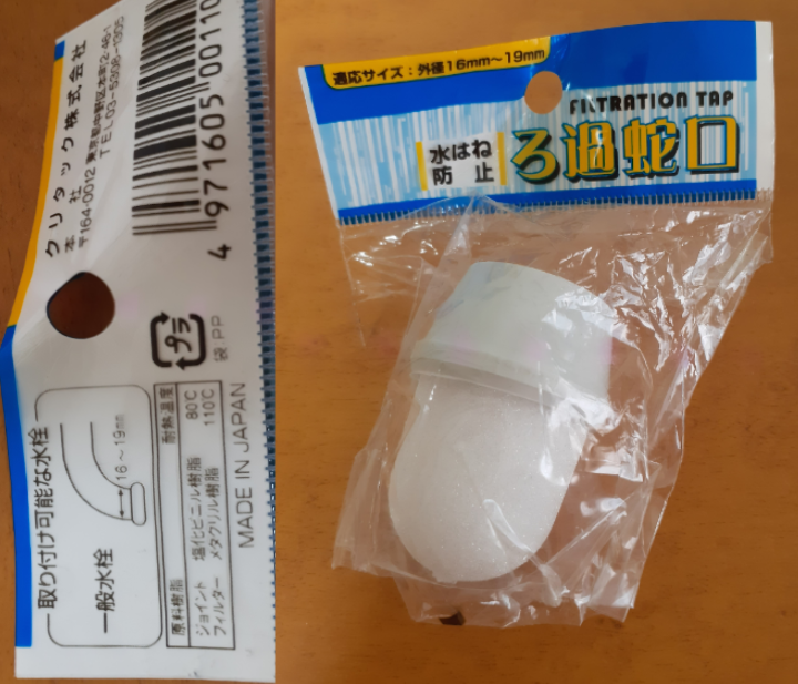 交換用に前に買っていた分100均で探しきれないろ過蛇口あるけど石ころが入ってる違うタイプのみスポッとはめるだけのこれがいいんだけどなあー備考:取り付け可能な水栓一般水栓16mm~19mm原料樹脂、耐熱温度ジョイント 塩化ビニル樹脂 80℃フィルター メタクリル樹脂 110℃クリタック株式会社MADE IN JAPANお世話になっておりますこれからもよろしくですホームセンターで探してみる