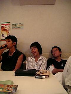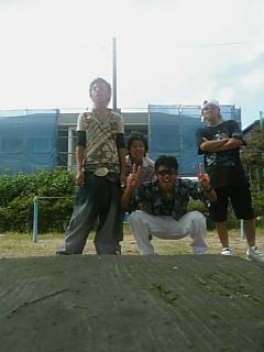 今日は朝の9時からたかちゃんちに集合して、で、俺とのりくんとだいちゃんとたかちゃんでいろんなとこにいったよン。とりまアミパラいってぼーりんGOOOOOOOOODしたよん。俺は金欠だったからみとくだけだったけど←いじめちゃうよ!!! 笑 結構おもろかった。ンでアミパラのゲーセンでプリとった。髪の色染めれるやつだったから四人ともそめてみたんですわ。中でも大ちゃんはいかつかった・・・ 笑俺はもちろん石井竜也みたいにしようとしたけど微妙な味がだせんかった・・・俺は中途半端に石井竜也をめざしてねぇんだ!!!←キモい?うンしっとるよ 笑 だからぜんぶきんぱにした。プチ石井竜也的な・・・うン。ンでそのあとドンキいっていろいろみた。ンでポチタマに予約してうどん屋でめしくった。まだ予約までに時間あったからポチタマの近くの公園で暇つぶしした。語ったよぅ・・・・・・語り明かしてIN THE SKYだっちゃン。 笑これがそのときのやつだよん♪そしてまだまだ時間があったのでだいちゃんにバック転の仕方そ教えたンですわぁ。俺は思った・・・彼の目つき・・・気合い・・・ 筋肉 笑 絶対できるようになると・・・ンでカラオケ。俺は言うまでもなく米米ワールド。たかちゃんとのりくんは思ったとうりの歌ってとこで、問題は大ちゃん 笑ほとんどドラゴンボールばっかうたってて、で、君が代歌い出して爆爆爆爆大爆笑だった・・・とまぁこんな感じで今日は楽しかったよン。いろいろとった写メはまた掲載するからみんなは浪漫飛行でもしてまっててねン 笑以上カールスモーキー米ディアンでした。次、虎舞龍よろしくぅ!!!!! 笑 押米←おしまい