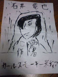 明日は小学校の体育会。・・・よりも石井竜也の誕生日なのだ・・・そう。歴史が動いた日なんだ。これは大げさでもなんでもない事実だ。彼が生まれてなかったら俺は今頃好きでもないアーティストに流されてただろう・・・彼が生まれてなかったら俺は今頃こんなに筋トレをしようとしなかっただろう・・・彼が生まれてなかったら俺は今頃・・・生まれてなかっただろう・・・といっても過言ではない。いや、むしろ自分の生きる目的が失われるといっても過言ではないだろう・・・いやいや、むしろむしろ地球が破滅していたといっても過言ではないだろう・・・・・・ごめん。最後のはさすがに過言だ・・・うン 笑ともあれ本当に祝いたいきもちで心がいっぱいなんすよ。一緒に祝いたい人は例の場所で・・・←こんなとこないよ!!! 笑本当におめでとうございます。来年このブログはたぶんつぶれてると思うんで 笑 最初で最後のお祝いです。感動と夢と浪漫飛行をありがとう!!!!! 米米CLUBは・・・米米CLUBは・・・永久に破滅です!!! 笑 あえての破滅だよン ワラワラそして今日は国語の時間に俺と大ちゃんですばらしいアートを書いたので紹介しよう!!!!!まずはこれだぁぁぁぁぁぁどう?誕生日にふさわしい似顔絵でしょ?結構にてない???塚、いまならリアルに500円で売るよ?????←うそうそ 笑そして・・・・おどろくなよ・・・・こいつだぁぁぁぁ!!!!でてこいやぁぁぁぁぁぁぁぁぁぁぁぁぁぁぁぁぁぁぁぁぁぁぁぁぁぁぁぁぁぁぁぁぁぁぁぁぁぁぁぁぁぁぁぁぁぁぁぁぁぁぁぁぁぁぁぁぁぁぁぁぁぁぁぁぁぁぁぁぁぁぁぁぁぁぁぁぁぁぁぁぁぁぁぁぁぁぁぁぁぁぁぁぁぁ・・・・・見にくいものをおみせして誠に申し訳ございませんm(_ _)m 笑大ちゃん作です。もはや日本人ではない・・・こんな肉体になれたらなぁぁぁ。。。これ一応俺がもでるらしいっす。輪郭とかもはやぜんぜんちゃうし・・・笑とまぁいろいろあって楽しかったよ。はよ文化祭の準備とかやりてぇぇぇぇぇ!!!ライブライブぅぅぅ。そしてゴレンジャー的なバック転~←募集中だよん 笑この3連休はひまだから家で一人祝いでもしとくかなぁ~寂しいよ~~~ 笑 まぁピンポンダッシュしてねン←ピンポンならないよ~ 笑おk。バイバ~イ以上カールスモーキー米ディアンでしたぁ!!!次、ピンクレディーよろしくぅ!!!!! 押米←おしまい←そろそろ覚えた? 笑