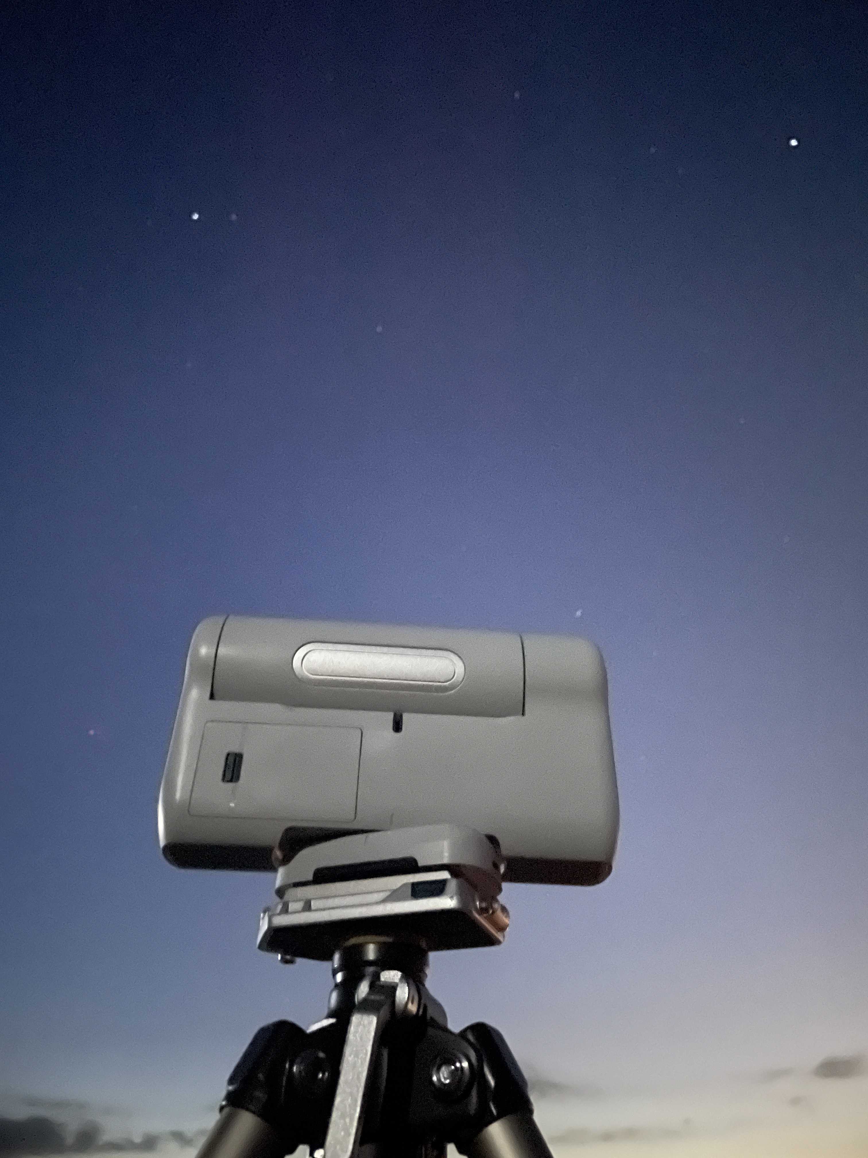 連日天気がいいわけでなく、程よくインターバルが開いてて楽ではある。でも、機材の毎回積み下ろしが増えるのも面倒。小一時間程度だから、自宅で撮れたら楽なのにとも思う。冷却カメラの画像処理はPCを使うのは仕方がないとしても、DWARF IIの方はちょっと違う。スタック画像の撮って出しより、写真スタジオ処理の方がちょっとだけ良くなる。あの処理をするにはスマホにDWARF IIを接続したままDWARF IIにあるデータをサーバにアップロードさせる手間がある。それの時間が読めない。早い時もあれば時間がかかる時もある。それも何時間も。早い時でも1時間かからない程度。たった1枚の画像でだ。さて今夜はスタートが15度だったので、-5度にセットして作業開始。もう流れ作業だわ。だんだん飽きてきた。だからと言って場所を変える元気もない。レモン彗星を導入させるが、どうもセンターに来ない。ああ、最新データをダウンロードして出てこなかったことを思い出す。次回からは、忘れずにやっておこおう。淡々と撮影し、最後にスワン彗星を撮影して終了。スワン彗星も真ん中に来ない。一移動をさせたかったが、月の影響でバックグラウンドが明るすぎて位置補正ができなかった。月齢10の月は明るかったので、スワン彗星の写りが悪い。そして今回もぼっち。途中カップルカーがやってきたようだけど、私がデンッとしてたのでぐるりと帰ってった気がする。