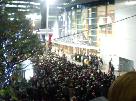 会場の横浜アリーナには、17時30分くらいかに到着♪そしたら、入り口付近はこんな事になってました!!ハロプロ関係で久々に込み合ってるの見た感じ!今回は、開場から開演まで1時間しかなくて、オープニングアクトもある関係で、一気に詰め寄せちゃったみたいです!!!で、いろいろと知り合いと話してから入場♪オープニングアクトギリギリかも…って思ったのですが、始まったのは18時10分くらいだったので、自分は何とか見れた感じかな?ただ、始まった時には結構入れてない人も多いような感じでした。で、オープニングアクトはスマイレージ♪曲は、「夢見る15歳」「同じ時給で働く友達の美人ママ」の2曲♪いつものパターンの自己紹介と、卒業メンバーとの思い出をそれぞれ語ってました♪詳細については省略しようかと思うのですが、あやちょが3人の名前行って、その後みんなでブラボー!とか♪リンリンは、ハロプロエッグの時に「リンリン様」って言われてたらしく、それはゆうかりんが呼んでたからみたいです♪そんな感じで、オープニングアクト終わる頃には会場が埋まってきてて、自分の位置からは遠くてはっきりとは確認できなかったのですが、関係者席には、娘。OG、ハロプロメンバーなどなどが多く来てたみたいです♪そして、自分はアリーナCで、本当にメインステージがかなり遠い所での観戦…(苦笑)メイン以外に、センターに花道&サブステージ♪それと周回っていう感じになってました♪そんな感じで、スタート♪立ち見も出るほどの超満員で、全体的にオレンジTが多く、亀井ちゃんファンがかなり多かったようです。今回は、基本は最近の娘。の曲を中心に、懐かしの曲も含みつつ、各メンバーのソロっていう感じのセットリスト♪他、6期のMCっていう感じでした。最近の娘。の曲は、ほとんど知らなくて、初めてちゃんと聞いたか曲も多かったのですが、「愛されすぎることはないのよ」(新曲CW曲)「友」(Japan Expoテーマ曲)とか、意外と良い曲も歌ってるんだなって知ったり、他、やっぱり6期メンバーの「大きい瞳」は、パワーがあってやっぱり凄かったです♪それと、古い盛り上がる系の曲も何曲かあったり、やっぱり、大きな会場でって事でまた違った良さがあって、全体的に非常に一体感もあって、良く盛り上がってたかと思います♪MCでは、6期メンバーの3人のトークがあり、さゆが「毒を吐いていこう!」ってな事で、暴露トークになったり♪(笑)亀井ちゃんは、さゆの家に泊まりに行った時に、パンツ一丁(上はTシャツ)だったとか、さらに、ムートンブーツはいて、鏡の前で「イケてるでしょ?」とか♪(笑)他、れいなちゃんによると、アフロ被ってブルブルのマシンとかに乗ってたようです♪(笑)(↑あまりに(ぶれて?)ひどくて、ブログに写真NGだったとか!?)そんな感じで、いろいろと暴露されちゃった亀井ちゃんなのですが、逆にれいなちゃんの事話してて、れいなちゃんは、いつでもサングラスしてるそうで、理由は、「人から見られるのに顔を作らなくて済むから」だそうです♪後、れいなちゃんは、ピンク好きだけど、さゆがピンクでいる限り、ピンクになれない!って話も出てて、さゆは、「悪いけど、さゆみはモーニング娘。に居座り続けますよ!」って言ってました♪(笑)こんな感じで、6期ならではの非常に面白いトークが聞けました♪そして、この公演ではそれぞれ8人ともソロ曲があり、さゆの「It's you」や、みっつぃーの「私の魅力に気づかない鈍感な人」は、個人的に結構高まりました♪(ちなみに、上の2曲は、メドレーでした。)そして、中盤で、卒業メンバーの3人のソロ曲があり、手紙の朗読をしてから歌うって流れでした♪で、きれいにそれぞれのメンバーカラーのサイリュウムで会場が埋まったり♪それぞれのメンバーのカラー&歌った曲は、リンリン→黄緑色(?)「渡良瀬橋」ジュンジュン→青「ふるさと」亀井ちゃん→オレンジ「春 ビューティフルエブリデイ」といった感じで、それぞれ非常に良い曲のセレクト♪サイリュウムはそれもキレイだったのですが、特に亀井ちゃんのオレンジは、UO(特に明るいの)と普通のがあって、明るい一面のオレンジに、さらにろうそくの光がついてるような感じで、一番キレイで感動的でした♪それぞれの手紙も、ジュンジュンは、何もかもが初めてで、そのすべてでファンがいて自分を受け入れてくれた事♪ファンの人は、家族で、ずっと忘れない!亀井ちゃんは、ここから新しい自分との戦いが始まり!モーニング娘。は永遠の愛の形!などなど、たくさんの感謝の気持ちの込められたものでした♪で、個人的にめっちゃ感動したのが、リンリンの手紙で、いろんな人への感謝の気持ちをちょっと笑わせてくれたりしつつ語ってくれて、手紙の最後が、…卒業まで笑顔でいる。泣かないって約束したのに、この手紙を書きながら、なんでか顔がめちゃ濡れてる…でも今日だけ許して下さいね♪みなさんは、いつもリンリンに、「幸せにな