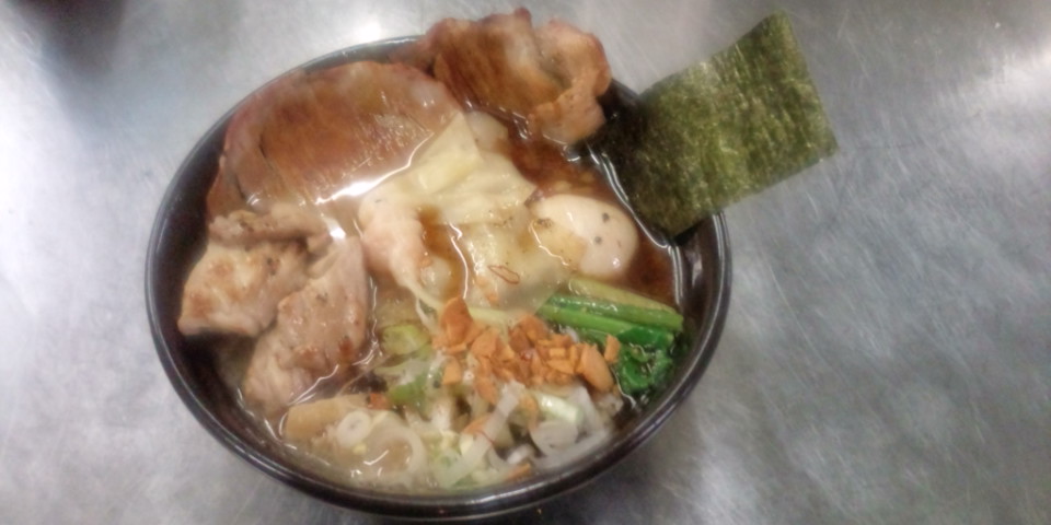 久々のお休みでお店の買い物に行ってきました お店の状況を聞いたら... ということで夕方自分のお店で早い夕食にしましたよ お勧めのトッピングで個人的にネギ・わんたんが好きなんですよ 塩味にネギって合うような気がします!お試し下さい!! 写真は味玉そばの塩味です!あと大人気の餃子も一緒に