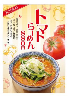 ついに登場 12月1日販売スタート 空海 冬の新メニュー 特徴・トマトのリコピンと鶏のコラーゲンがたっぷり入っているお肌に良いラーメンです・トマトのスープにほうれん草と粉チーズを載せることで冬をイメージした盛り付けとなって おります 是非、ご賞味下さい