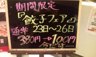 23日~26日の4日間23日~26日の4日間!餃子380円→100円 今がチャンス