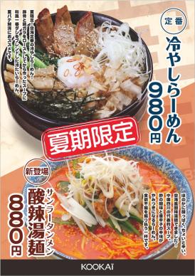 残りがあと16日間ですよ~毎年、人気絶好調の『冷やしラーメン』新メニュー 『サンラータンメン』 今月いっぱいまでの販売 まだ、ご賞味していない方は空海へレッツゴー 寂しい限りですが、秋にもまたまた新メニュー登場 次回、ご紹介