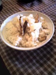 ご飯は、味付けは難しいから、「白だし」を使うのが一番ね。お肉は、そんなに量が多く無くってもいいのよ、双方が味を引き立てるので、美味美味。
