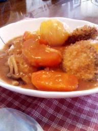 これまた、昨夜の残りの「フライ」を載せて、カツカレー・・・うん、ほくほく野菜と、フライのじゅわーっと感で、ああ、残り物には福がある、絶対!