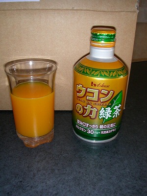 年末に二日酔いになったのでちょっと健康にも気をつけなければとちょうどモラタメでウコンの力緑茶があったのでタメしてみました。人気ないのかまだ残ってます。6本1200円が送料込みで630円で試せます。ウコンって正直何にいいかわからない。肝臓かな?初ウコンです。いつもは説明もよまずそのまま飲むけど、見ると色素が衣類につくとシミになると書いてあったのでコップに入れてみました。予想外の色。子供が缶を見た時飲みたいって言ったけどこの色をみてやめた。旦那のスーパーでこの商品を見ていたけど少しのんでパス。緑茶のちょっとくせがある味で私は問題なし。のどが渇いてるときは一気に飲めそう。1日1~2本って書いてあるけどそれは無理だわ。今日は昼から旦那とダイエーにレシート作りに行ってきました。遠いのでキリンとアイスのレシートを作って、アイスはお店で食べてきました。ジャスコは昨日行ったけど広い駐車場なのに空きがなかなか見つからない。郵便局の出張所で記念切手を買ってきました。昨日は駅伝を見ながら今年初のはがき書き。今日はまだ書いてないのでレシート応募分書かないと。まだ初荷がなく年賀状しかこない。28日に投函した年賀状実家に電話したら3日に届いたんだって。お友達の所にはまだ届いてないみたい。遅くだした私も悪いけどちょっと遅すぎるよ。今はメールが多くなって年賀状出す人減ってるっていうのに~合宿に行ってる娘からは、練習キツイとか家に帰りたいとかメールがくる。もうあと半分だから乗り切ってほしいなぁ。by:ちび子