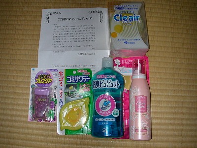 2日前行方不明になっていた小包は小林製薬のW賞小林製薬詰め合わせでした。今日は西武航空?からIY&サントリのW賞 豆腐石鹸セットまぁ1枚応募だから当選しただけよかった。写真を撮ったら早速娘が使って、上手にバラの形にしていました。昨日スーパー巡りをしていたら渋滞の合間からミニバンが横切ってきて私の前のトラックにぶつかりそうになった。急ブレーキをかけて危機一髪。トラックの運転手は窓を開けて暴言を吐いたのかと思いきや空き缶をそのミニバンにぶつけた。ちょっとへこんだようでミニバンから運転手が下りてきて言い合いになった。ミニバンの助手席には奥さんが乗っていて止めていたけど振り切ってた。私はなんとかすり抜けて前に進めたけど、私の後ろはトラックで止まったまま。ほんと迷惑だわ。あの後どうなったのか気になるけどニュースにはならなかったみたい。事故が多いから運転には気をつけましょう。ウドちゃん交通事故に遭ったみたいだけど大丈夫だったのかしら。by:ちび子