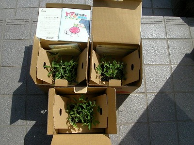 月末だっていうのに何もお届け物がないなぁ。と思っていた所、なにやらトラックが止まった音。だいたい音で郵便か宅配かメール便かわかる。昨日に引き続きカンガルー便マックスバリュ中部&カゴメ凛々子4ポット×3家族の名前1箱づつ当選。1つは当選してほしかったけど3個もくるとは・・・・プランターと土が足りないから買ってこないと~今までトマトを育てたことはあるけどできるとすぐに娘が食べちゃうのでこれだけあれば私の口にも入るでしょう。新聞屋さんからミニひまわりの種も貰ったのでこれも植えようっと。久しぶりにジャスコに行ってきたら森永でDSの当たる懸賞が昨日からはじまっていた。DSは50名、ソフト2本が25名。難関だわ。あとはアサヒビールも。どこもアサヒビールと伊藤園ばかり。トマトの苗を撮ろうと外に出たらとかげが玄関を横切った。写真を撮りたかったが、めっちゃ早くで撮れなかったよ。でも爬虫類は嫌い。庭に潜んでいそうだわ。by:ちび子