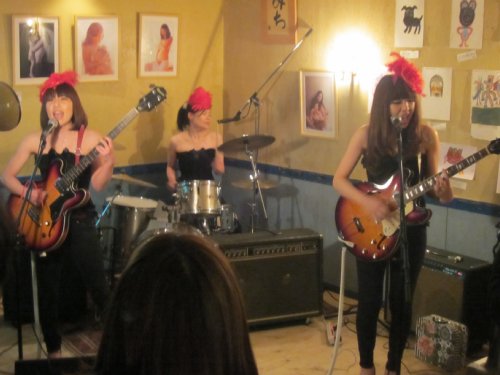 昨夜は、メロメロポッチで「TEA SET 」というイベントを観てきた。Shotgun runners(初耳)がホストのライブだ。出演は、The ClassicalsあすなろうShotgun runnersThe Mayflowers目当てはもちろんメイフラワーズ!いい席を確保、と思って早めに行ったのだが、まさかのスタンディング。トリのメイフラワーズまで、長い道のりが待っていたのだった。バラエティに富んだバンドで、飽きなかったが、スタンディングは、やはり疲れる。●The Classicals(たぶん)50~60年代のポップスを演奏するギャルバン。衣装がかわいい。●あすなろうカッコいいわ。CD購入。リーダは金沢出身、東京在住。●Shotgun runners50~60年代のR&Bが基本なのだろう。そんなオリジナルがカッコいい。金沢にこんなバンドがあったのね。●The Mayflowersやっと登場。待った甲斐あり!やっぱりカッコいいわ。メイフラワーズは何度も観ているが、夕焼け以外で観たのは初めてだ。たまには他で聴くのもいいが、夕焼けの音の良さをあらためて感じたのだった。そんな環境でもエキサイティングなステージを見せてくれたメイフラワーズに感心!(壁の絵がシュールなのだ)そんな感じで、楽しいイベントは終了。腰が痛い。帰りに久しぶりに食った。