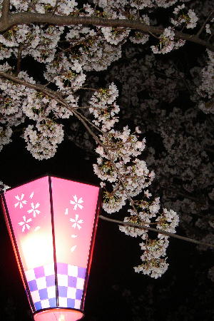 <夜桜>風もなく夜桜見物には絶好の夜…夕食後、7時頃から公園に夜桜を見に出かけた。今日あたりが満開のピークで後は散るばかりの桜…昼と夜では随分、雰囲気が変わる。満月ではないが、月がとても綺麗な夜…ボンボリと桜は明るくて、楽しい感じだったが、月と桜は妖しげな雰囲気があった。私の桜三昧も今夜が、今年最後となることでしょう…