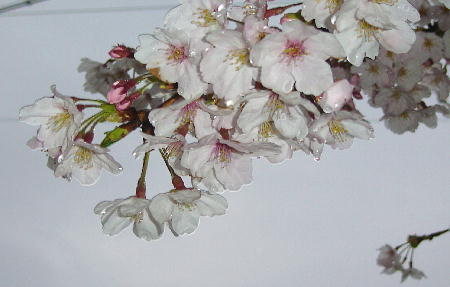 先日、再度入院した姉のいる病院まで出かけて、その帰りにいつもの公園に寄りました。しだれ桜が満開で美しい姿を見せていました。私がこの公園に来るたびに出会う三人の高齢者の方がいます。いつもは、挨拶だけで終わるのですが、今日はどうゆう風の流れだったのか、そのうちの一人が私に話かけてきました。年齢を聞いたら、80歳だという。夏日の今日…「ここは暑くないですか?」と聞いたら「年寄りには丁度良い」との返事。世間話を少々…お婆さん達と話しながら、何故か私は、両親の顔を思い出していた…妹の顔を思いだしていた…そして、さっき会ったばかりの痩せた姉の姿を思い出す…公園の桜はもう散るばかりで、舞い散る花びらが道をピンク色に染めているその花びらを踏んで歩くのは、何となく気後れがしてしまい公園の外に出て、違う道を歩く。取り残されてゆくような、そんな気分に急に襲われて寂しさが胸をよぎる…華やかなボンボリが滲んで見えた…