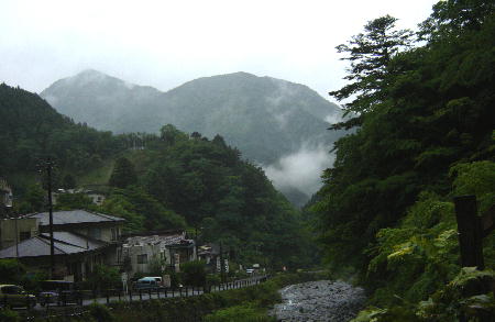 先日行きました梅ヶ島温泉地域の更新です。駅から梅ヶ島温泉に行くバスは、6運行で梅ヶ島から駅に向かうバスは5運行と一日に数本しか運行をしていない。それに夕方5時過ぎのバスが最後で、これに乗り遅れたら旅館か民宿に泊まるしかない。最終バス一つ前の3時22分発に乗る予定の私にはまだ充分時間があった。この日は、下の地図の赤い線を引いた箇所をウロウロと徘徊しました(*^_^*)残りの時間を安倍峠に続く道路の山道を歩いてつぶすことにする。相変わらず傘を片手に…です林道から眺めた温泉の風景この先の道は、12月頃から5月頃まで、冬季閉鎖されるとのことでした。ゲートの近くに八紘嶺(1918メートル)への <はっこうれい>登山口があり、その入り口近辺を歩きました。安倍峠に行く途中に富士見台といって富士山がよく見える場所があるというので秋になったらチャレンジしようかと思っています…安倍峠から眺めた富士山…美しいですねェー☆※この富士山の画像はyahoo!の安倍峠の画像から転載したものです。安倍峠(1416メートル)の登山コースとハイキングコースとがあります。登山口にあるゲート管理をしていたおじさんの小屋で少しの間、世間話をしてから、私は、いま登ってきたばかりの道を引き返し、バスに揺られて梅ヶ島温泉を後にしました。山奥の不便な土地で、それぞれの人が、置かれている環境に適応しながら不満も文句も口に出さず、助け合い、求め合うようにしてひっそりと暮らしていた…そんな風に思った梅ヶ島地域への小さな旅でした。素晴らしい風景をありがとう…