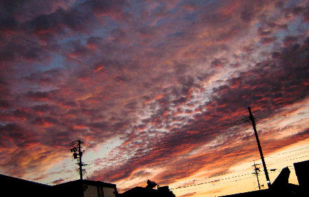 今日の空…PM6時30分頃爽やかな風が吹いていた夕方、空を見上げれば、もう秋の雲…これからの季節、空も高くなり、夕焼けも美しくなります。