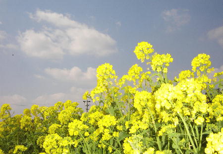 風は春の風…日差しの暖かい穏やかな一日だった。ぶらぶらと近所を歩く。先日より少し遠くまで足を伸ばして休耕田に植えてある菜の花を見に行ってきた。渥美半島の田原町の菜の花畑には到底及ばないが、我が地元でもこうして菜の花が見られる…通り道から外れた場所にあるので誰かが見に来ることもない場所。地元にいる時にはいつもこの季節になると「今年も菜の花はさいているかなぁ」と訪れ、黄色い花が見えると何故か「ホット」します。川縁の土手には土筆とタンポポのコラボ…チョット土筆がわかりにくい画像でゴメンナサイm(_ _)mお寺の門前でちょっと一休み…甘夏?八朔?何だか分かりません…近所ではこのような木をよく見かけます。やはり外はいいなぁ~~~~!!春の草木に元気を貰い、夕飯がとても美味しく頂けました。感謝!感謝…