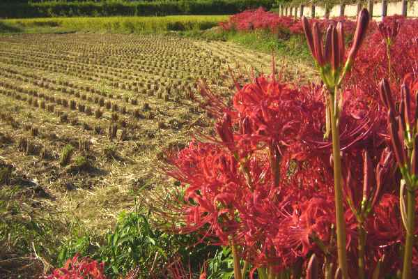 稲の刈り取られた田んぼで畦道に群生している彼岸花をボーっと眺めていた。、居場所を追われた小さなカエルがピョンピョンと草むらに入ってゆく…捕まえようと手を伸ばしたら、あっさり逃げられた…