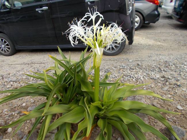 夏によく見るハマユウの花が 駐車場の空き地で咲いていた。咲く時期を間違えたのかな?この時期にハマユウの花を見るのは珍しい…と思ってパチリしました。どこでも見られるおしろい花。おしろい花の種。 種の皮をむくと白い粉状のものが出てきます。子供の頃、この白い粉状のものを 手につけて遊びました。白粉を付けたように 手が白くなった事を記憶しています。野ぶどう…実には様々な色が出ますが、今回、出会った野ぶどうの実は白色だけでした。ホトトギス千両 公園の中に祀られている秋葉神社の参道の脇に植えられていました。ピラカンサス(オレンジの実)枝が重そうに垂れ下がっていました。セイタカアワダチソウ…最近、見かけなくなったなぁ…と思っていたら、なんの、なんの、生えてる所には生えていた。ススキと空 秋だなぁ…と、しみじみ空を見上げた。26日の夕方の空