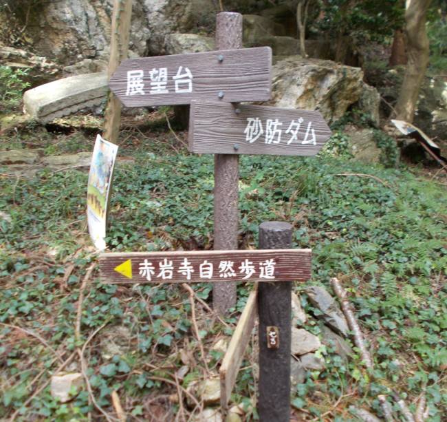 のんびりと赤岩寺をお参りした後、私は展望台に向かうことにしました。登り始めの道は舗装されていましたが…次第にデコボコした道になり、足元には苔。なんだか気持ちが弾みます(苔 大好きです)栗のイガが沢山落ちている個所もありましたが、実は入っていないものばかりだった…残念!山道を登りはじめて10分くらいかな。展望台が見えました。どんな景色が待っているのでしょう…右手の方が豊橋市街かな?。別の方向から見た風景。吹き抜ける風が気持ちよかった…暫く「ぼ~~」です(^^♪この日は、誰もいなくて貸し切り状態…満足、満足。赤岩寺に戻ります。バスの時間まで近辺を散策しました。ミズヒキの花…タデ科(花言葉は慶事、祭礼)下の方の丸い葉はツワブキの葉です。イヌタデ…タデ科 別名…あかまんまバス停の近くに大きなフェニックスの木(カナリーヤシ)インパクトがありました。多米町では、柿畑を沢山見ました。どうやら柿の生産が盛んなようです。住宅街の空き地にも柿畑…我が地元のミカン畑のようなものですね。柿が食べたくなりました(^u^)
