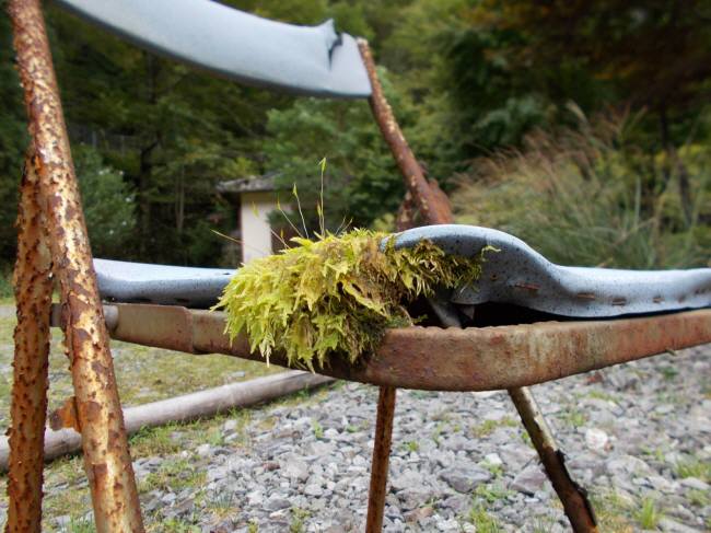 前回の続きです。空き地に放置された鉄パイプの椅子。破れた隙間から苔が…パイプの錆び具合、苔の生え方からして何年もここに置かれたままであろう…と思いました。沢口山の登山コース案内。近くに登山口があります。私が登ったのはもう何年も前のこと…沢口山はこんな山。以前 私が登った時の画像をUPして沢口山を案内します。一緒に登った気分になって頂ければ嬉しいです。頂上に行く途中で富士山が見える展望所があります展望所から眺めた景色。遠くに富士山が見えます。同じ静岡県なのに あんなに遠くに富士山が見えるのが不思議でした。頂上に向かう道にある鹿のヌタ場。ヌタ場のオオミズナラの木ここから少し急な階段が続きます。体力を振り絞ってもう少し…頂上に着きました。寸又三山の一つ沢口山の頂上です。寸又三山とは…沢口山(1425)朝日岳(1827)前黒法師岳(1943)の三山です。この三山は、南アルプス前衛の山々と云われています。三山の登山口は全て寸又峡から…沢口山の登山口の横に建つ如意輪観音堂。山から下りたら温泉ですね。疲れた体を癒しましょう…町営の露天風呂。露天風呂付近から山を眺める…雲が山に降りてきました。もうすぐ雨が降るという前兆です。坂道を下っていたら、イヌサフラン(別名 コルチカム)の花が咲いていました。ユリ目、ユリ科。原産地…ヨーロッパ中南部、北アフリカ。イヌサフランには アルカロイドのコルヒチンがあり有毒です。イヌサフランが日本に伝わったのは明治時代。園芸植物として広く植えられる。葉がギボウシやギョウジャニンニクと類似している。間違えて食すと危険です。寸又峡温泉のモニュメント。ニホンカモシカの生息地.山を歩いていて二度ほど遭遇したことがあります。ニホンカモシカと遭遇した時に写した画像です。どこにいるのか分かりましたか?二、三年前に出来たであろうと思われる 足湯とカフェを併設した施設。以前は営林署でした。顔ハメ看板。これも最近 置かれた物かと思いました。車両進入禁止の柵の横を通って、今、若い方に人気の「夢のつり橋」に向かいます。ここには徒歩のみでしか行けません。私の目の前に…手をつないで歩くカップルが…今回はここまで…続きは次回にて。