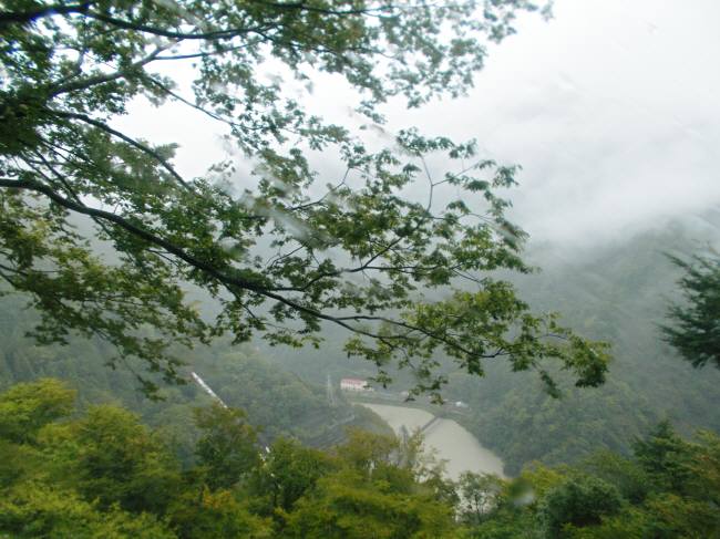 その二からの続きです。前を歩くカップルの背中を追いながら歩を進めます。雲が山にかかってきています。「こりゃ、雨が降るぞ…ヤバイかも~」と傘を持たない私。下を見ると猿並橋(さんなみばし)が見えます。猿並橋…こちらの画像は以前写したものです。猿が並んで渡るくらい狭くてボロい板が二枚…この橋を渡った所に朝日岳への登山口があります。山や木々を眺め歩くこと30分…雨が酷くなってきましたので、残念でしたが傘を持たない私は 今回ここでリタイヤです。吊り橋の画像は 以前私が写したものを載せていますので、ご容赦ください。(季節は冬です)夢のつり橋が見えてきました。チンダル湖…雨降り後は水が濁り、このようなコバルトブルーは見られません。光の特性によって起こる物質的化学現象の一つがチンダル現象。そのチンダル現象から名付けられました。吊り橋の入口です。夢のつり橋…キャッチフレーズ…死ぬまでに一度は渡りたい夢のつり橋。冬は閑散として誰もいません。貸し切り状態です(^^♪因みに 秋のシーズン中の「夢のつり橋」です。一度に10人位しか渡れませんので順番待ち…水面がブルーでないって事は、雨がふった二三日後でしょう…吊り橋を渡り終えるとこのような看板があります。橋を渡るのが嫌な方(高所恐怖症など)の方は別コースで夢のつり橋を眺める形で別方向へ…松の木の下の方に見えるが 夢のつり橋です。逆回りであるいて行くと飛龍橋が見えてきます。飛龍橋…深い渓谷沿いに架かるアーチ型の鉄橋で高さは約100mあります。ここは嘗て森林軌道のトロッコが走っていましたが、今は営林署の林道となっており、一般車両は走行出来ません。シーズン中の飛龍橋。飛龍橋を渡って右に少し歩くと尾崎台展望所がありトイレとちょっとした休憩所があります。左の道を行くと前黒法師岳への登山口になります。展望台から道を下ると 夢のつり橋に行くことが出来ますがシーズン中の逆渡りは ご法度なので来た道を戻る事になります。足湯カフェと同じ方が営むお店です。東京のお店のせんべいとコーヒー「晴耕雨読」と云う店名。土日、祭日、シーズンの時期だけ営業しています。メニュー去年の秋にテレビで寸又峡の 夢のつり橋が何度も放送されました。報道の力は偉大なり…で、以前は年配の方の観光が多かったのですが、最近は若い方が多くなり、寸又峡も賑やかになりました。帰宅する日が台風24号と重なりました。その様子は後ほど…私が第二の故郷と思っている寸又峡…長らくのお付き合い、ありがとうございました。