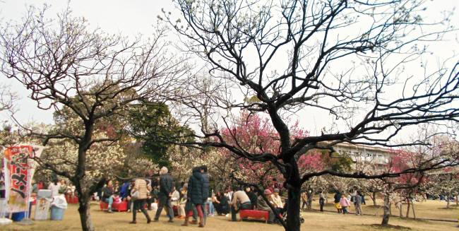 豊橋市にある向山緑地公園内にある 梅林園に行ってきました。向山緑地内の梅林園は、東三河最大級の梅林園と云われています。樹齢約45年の早咲き、中咲き、遅咲きの梅28種類、約400本が入園無料で観賞できます。日曜日ということもあって、とても賑やかでした。真っ赤な花が、空に向かって咲いていました。この花は「光源氏」と木札がありました。梅の花は、楽しむことは出来ましたが、個人的な感想を書きますと…本数は少なくても 寺や日本庭園、山間の自然の中で観賞する梅の方が 情緒があるように思いました。