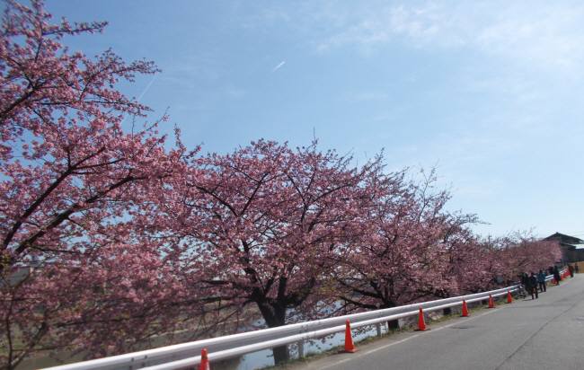 岡崎市を流れる 乙川沿いの堤防に800メートルにわたり 河津桜が植樹されています。今日、一足早い花見を楽しんできました。一緒に行ったつもりで 楽しんでいただけたら 幸せに思います。ず~~っと向こうの方まで河津桜…見ごたえあります。春の日差しを浴びながら…ん…満足。