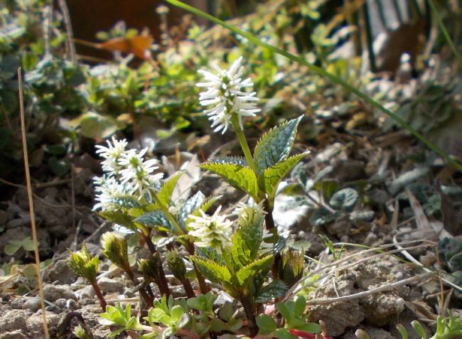 散策で出会った花たち。ヒトリシズカ…別名 吉野御前センリョウ科 センリョウ属 分布…山野の樹陰など。ヒマラヤユキノシタ…ユキノシタ科、ヒマラヤユキノシタ属原産地…ヒマラヤ山脈周辺(アフガニスタンから中国にかけて)近くに寄ってみました。山吹によく似ていますが こちらの花は、ウンナンオウバイです。ウンナンオウバイ…モクセイ科 ソケイ属原産地…中国西南部 明治初期に渡来した。八重咲きヤマブキ…バラ科 ヤマブキ属分布…丘陵地や山野の林の中「七重、八重、花は咲けども 山吹の 蓑一つだに 無きぞ悲しき」兼明親王が京都の小倉山付近に住んでいた頃、雨の中、蓑を借りに来た人に 山吹の枝を折って渡したが、相手はその意味が分からなかった。翌日、その意味をたずねられた時に 詠み贈った歌。一重咲きの山吹は実ができますが、八重咲きの山吹は おしべが花弁に変化してしまうために実が出来ません。蓑と実の無い…をかけたのですね。昔の人は 花に託して 風情のある対応をされたものですね。