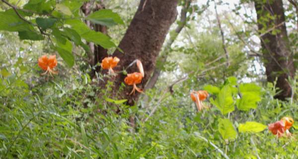 丘の斜面にオニユリが咲いていました。