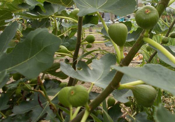 畑にはイチジクの実、