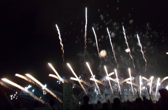 ​​手が届きそうなくらいの所まで 花火が降り注いできます。