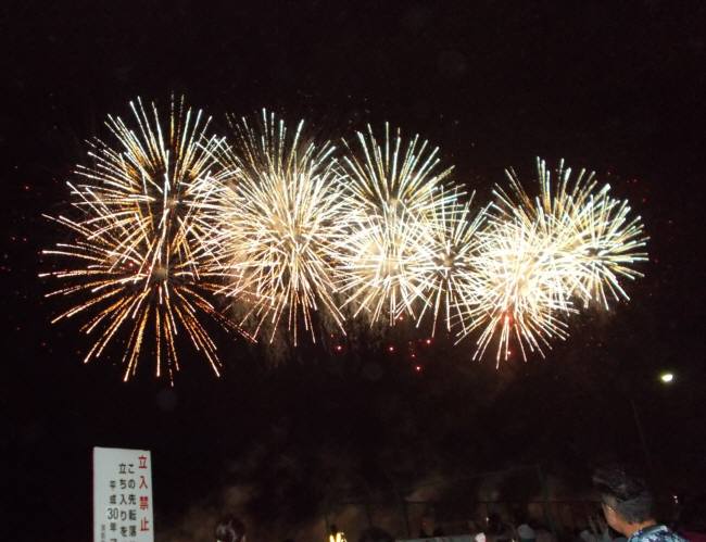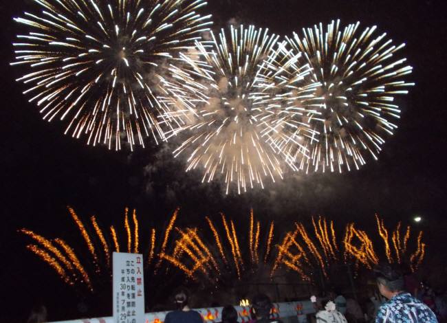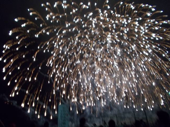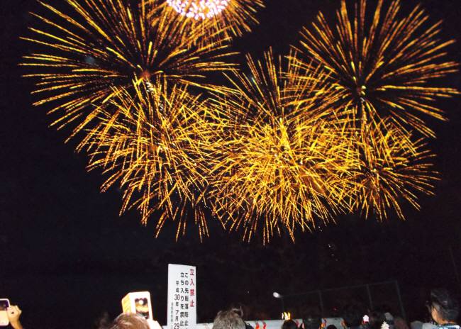 ​​クライマックスの仕掛け花火の時にも三尺玉が上がりますが、