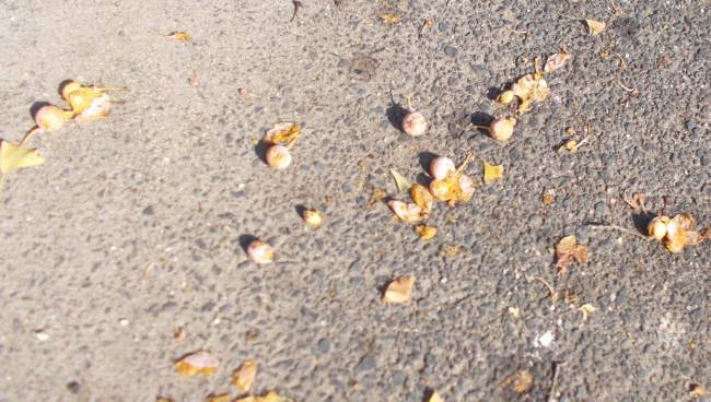 歩道に落ちたギンナンが踏みつぶされていた。(少し臭かった)
