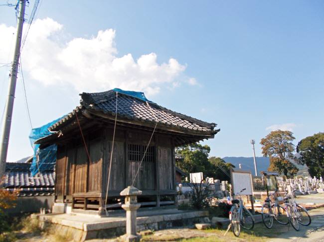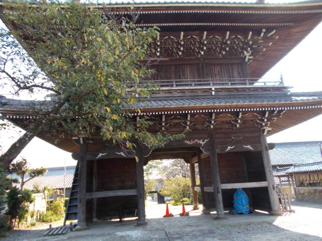山門は残りましたが、ブルーシートに包まれた鐘が