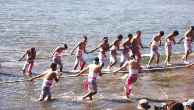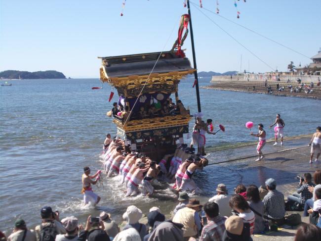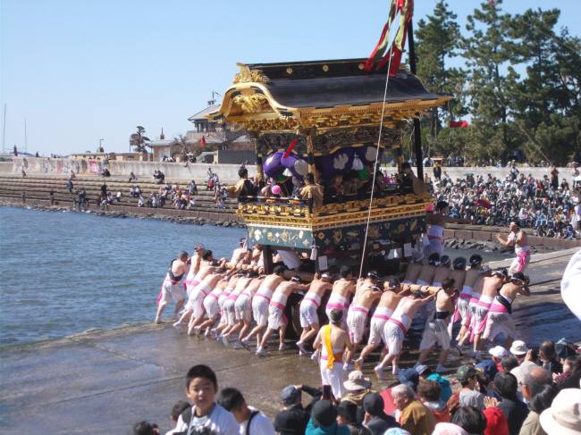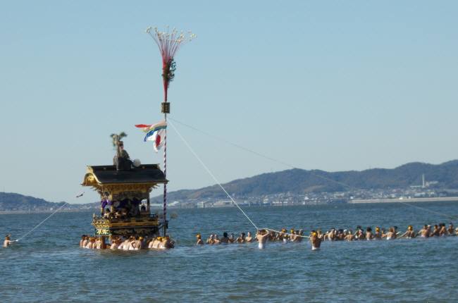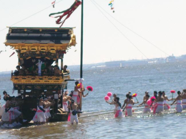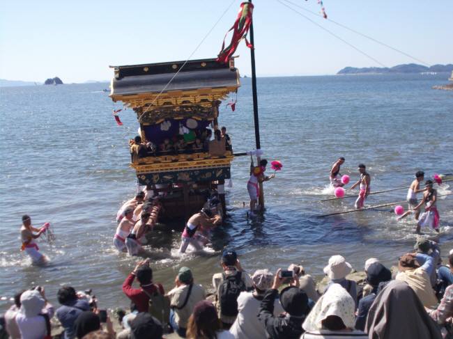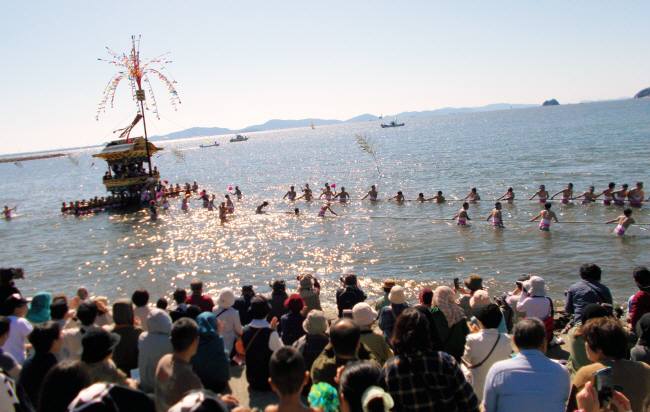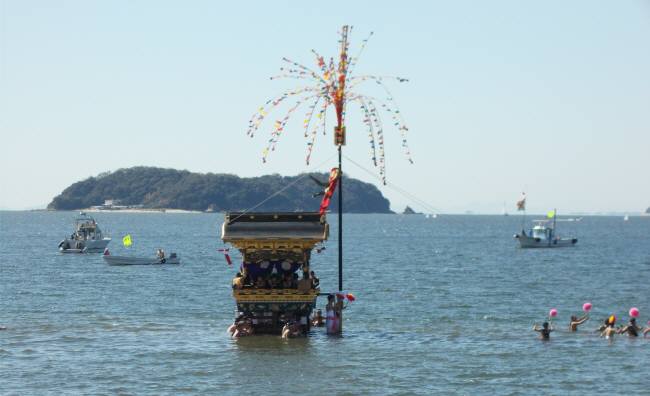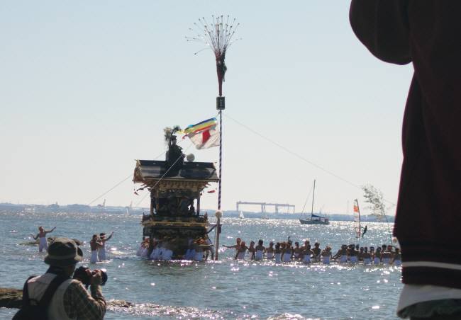 と云う事で、三谷祭りの海中渡御、見に行ってきました。