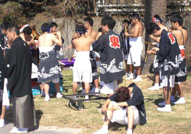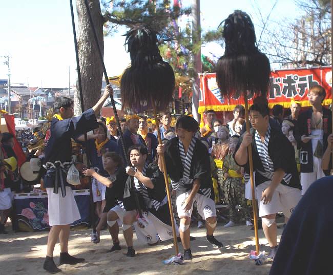 ​​道具(刀?)を手にした氏子