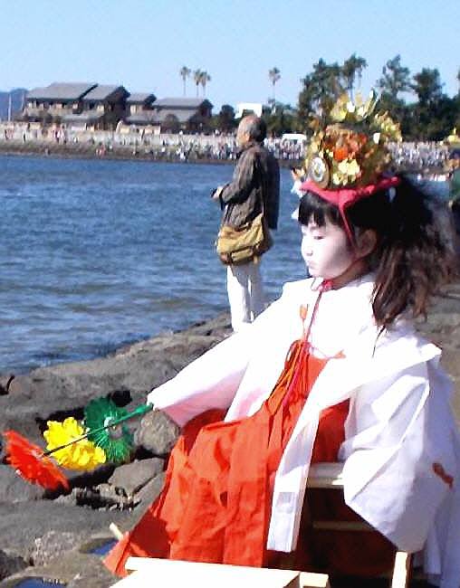 ​​神子(みこ)姿に扮した二人のお子さん。